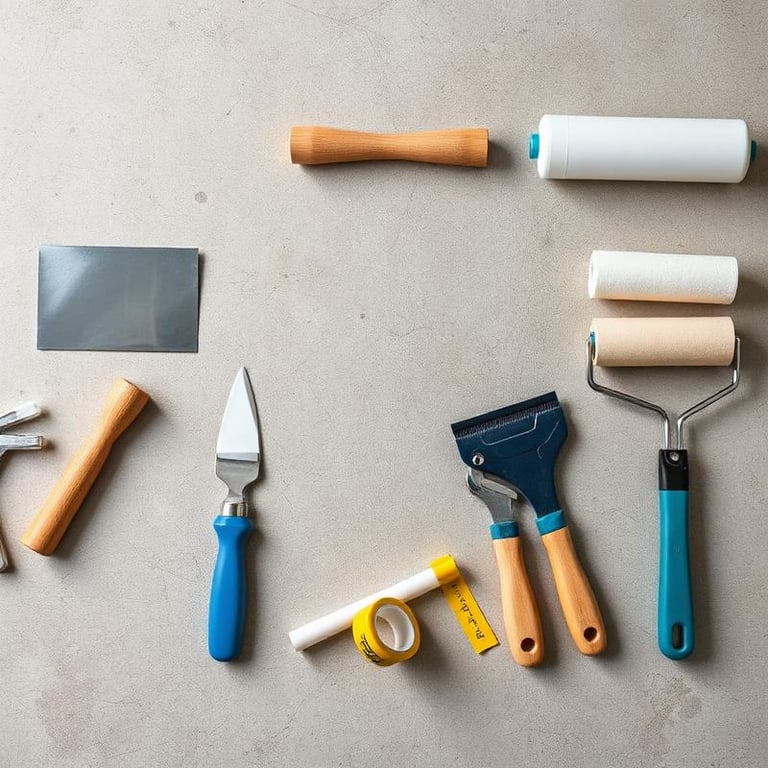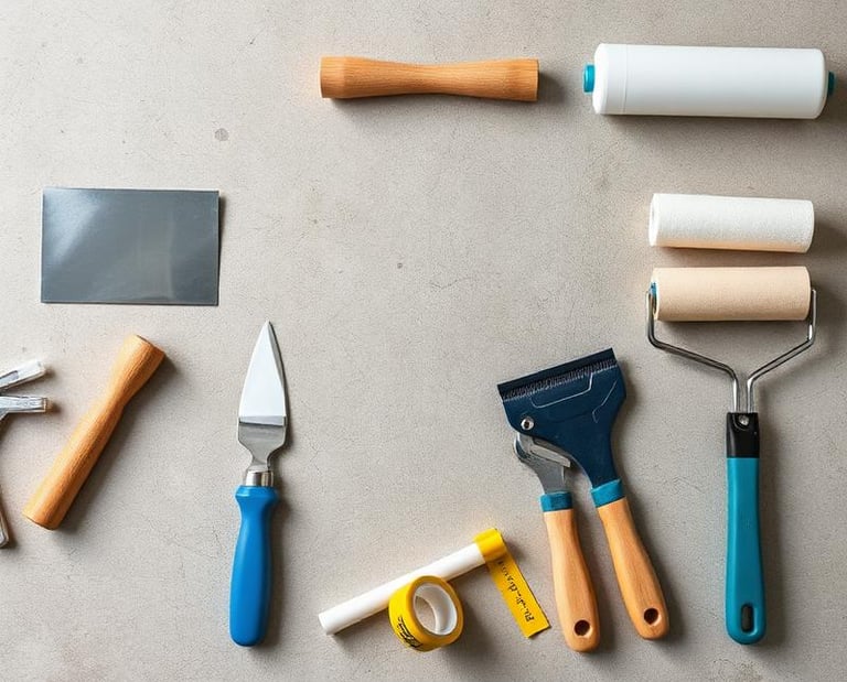 Bâches, scotch, outils, rouleaux, taloches et matériel professionnel.