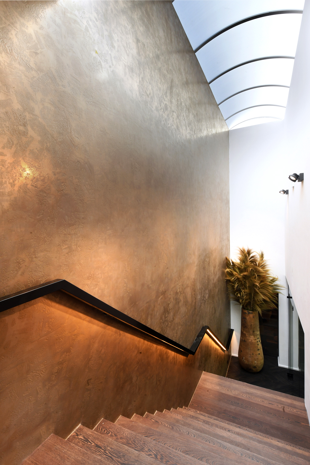 Un revêtement luxueux à base de poudres métalliques qui métamorphose murs et mobilier en métal noble, offrant des textures sculptées ou des finitions polies pour un design de caractère en seulement quelques millimètres.