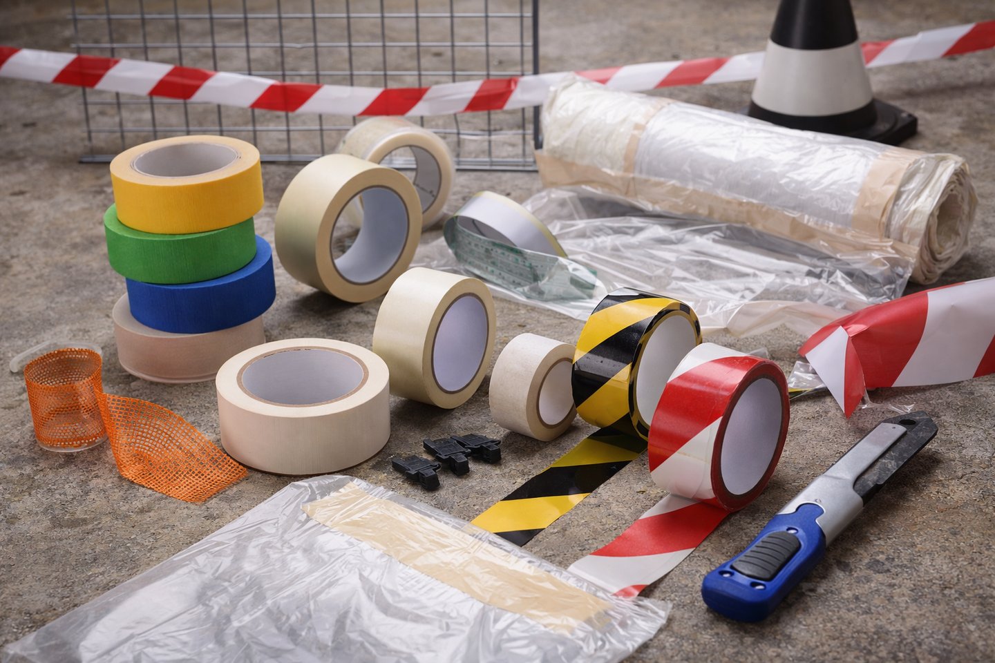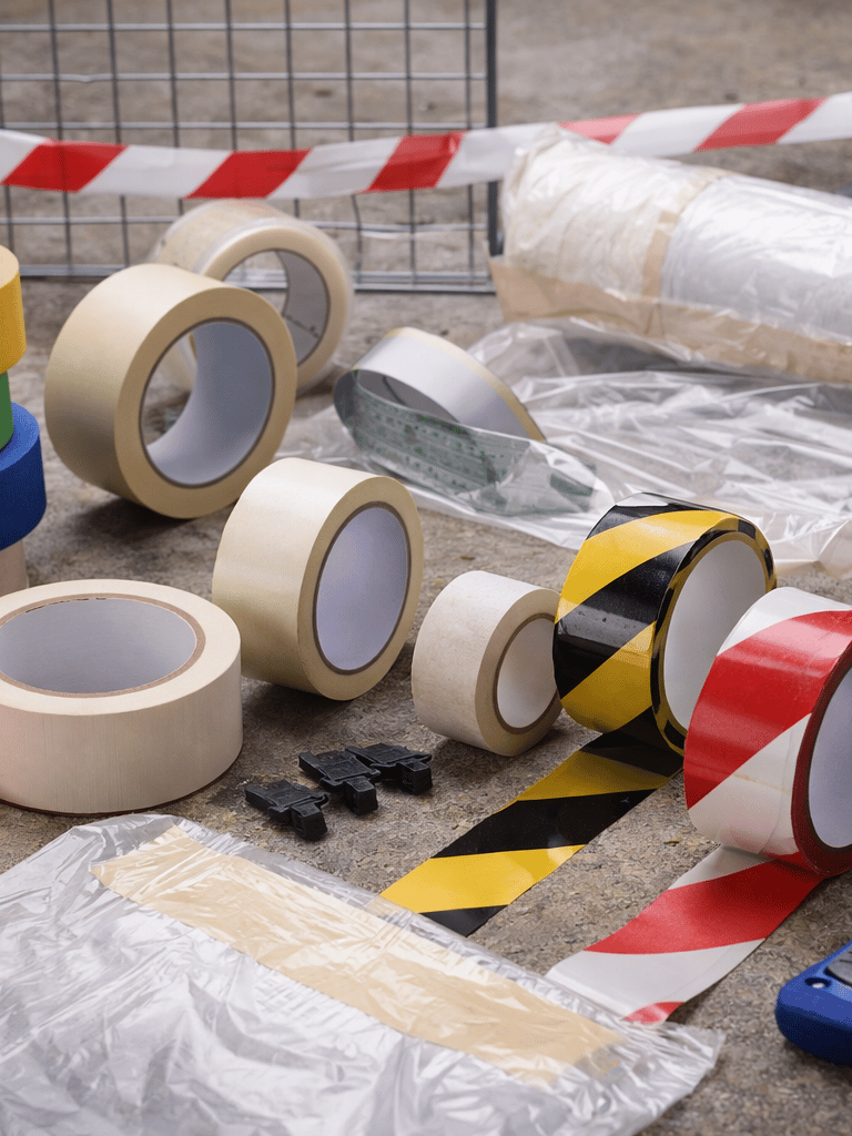 Rubans de masquage, adhésifs techniques, grilles de réparation, films de protection, sacs à gravats et bandes de signalisation pour préparer et sécuriser efficacement vos zones de travail.