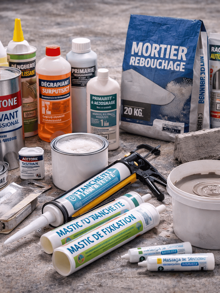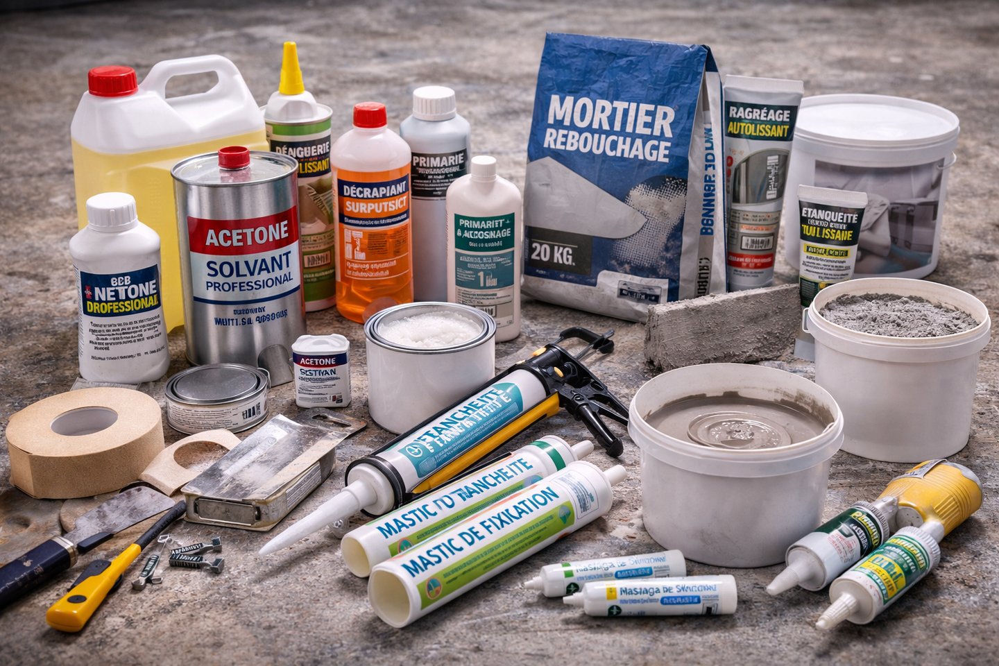 Nous proposons également des solutions utiles au chantier comme des solvants professionnels, produits de préparation des supports, ragréages, mastics de fixation et d’étanchéité.