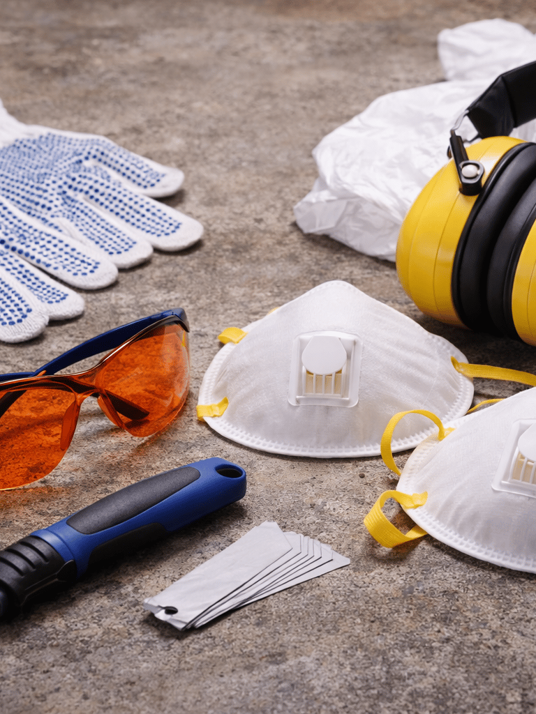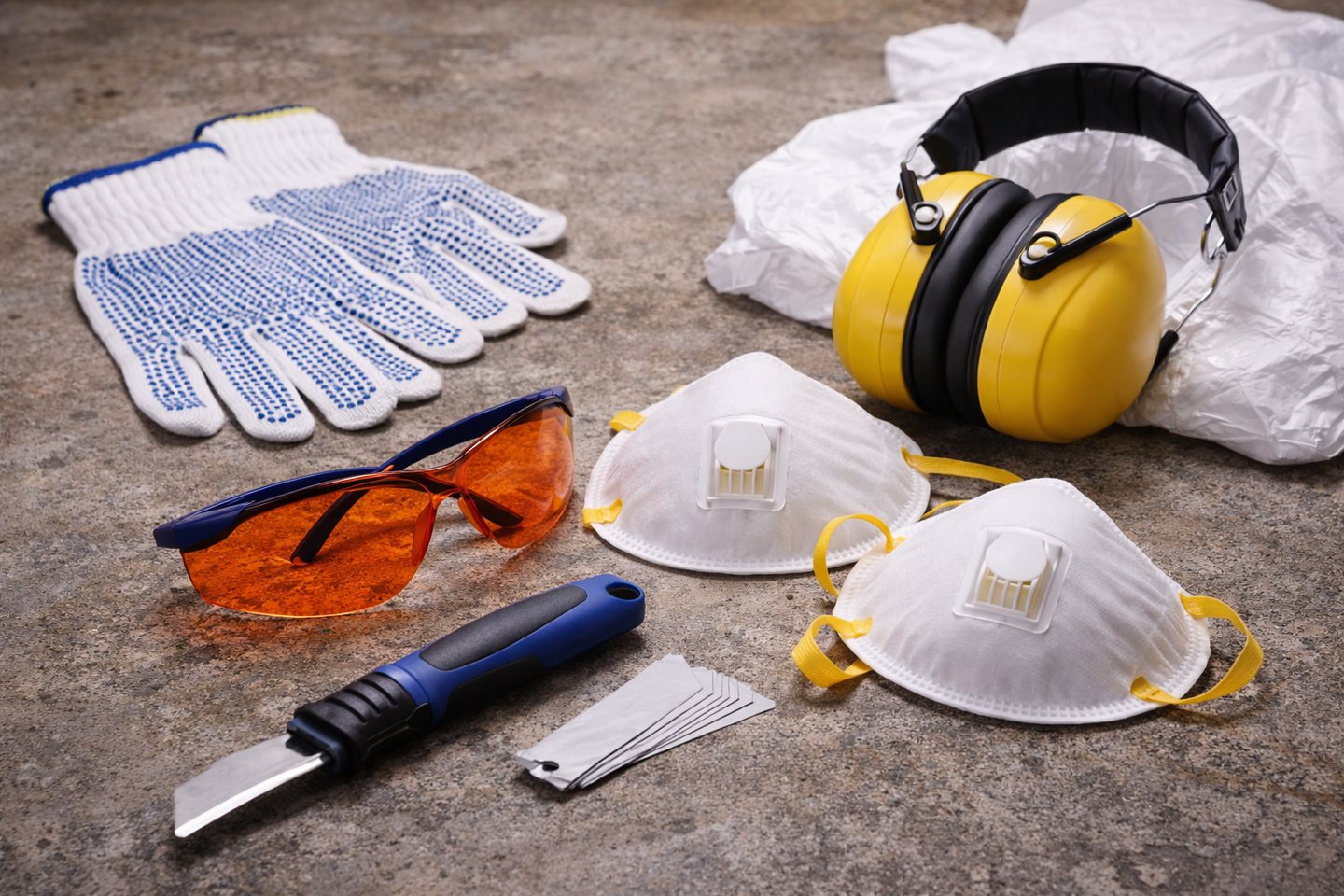Gants, lunettes, masques anti-poussière et protections auditives pour travailler dans de bonnes conditions et renforcer la sécurité sur chantier.